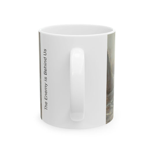 The Enemy is Behind Us - Ceramic Mug with Pea Ridge Civil War Design.