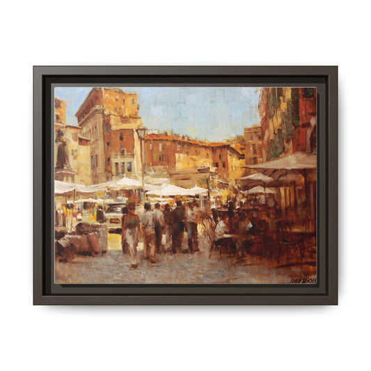 Tuscan Markets in the Middle - Framed Matte Canvas Art - Colorful Italian Landscape