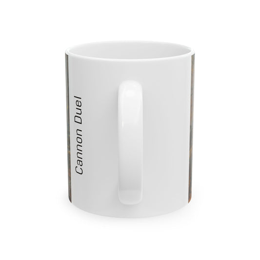 Cannon Duel - Ceramic Mug with Pea Ridge Civil War Design.