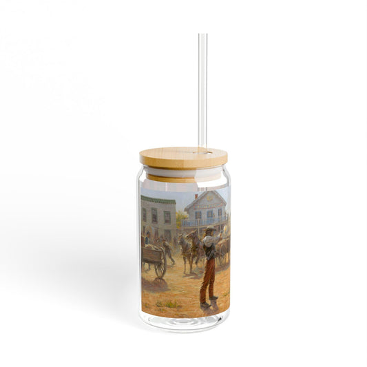 Wild Bill Hickok vs Dave Tutt | Artistic 16oz Sipper Glass with Eco-Friendly Bamboo Lid