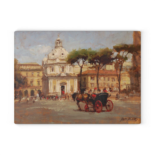 Buggy Ride at Piazza del Popolo - Glass Cutting Board | Italian Landscape - Perfect for Cooking and Décor
