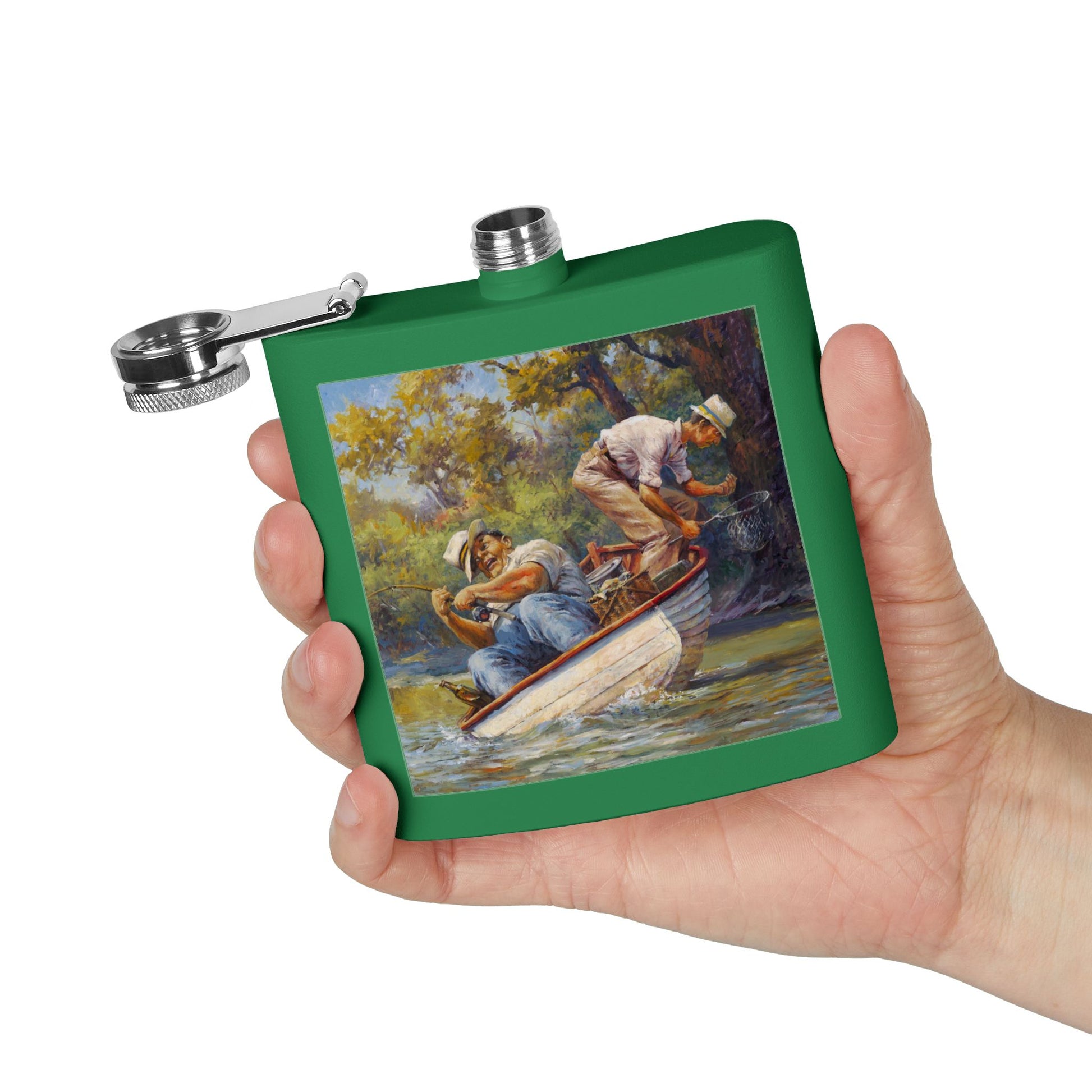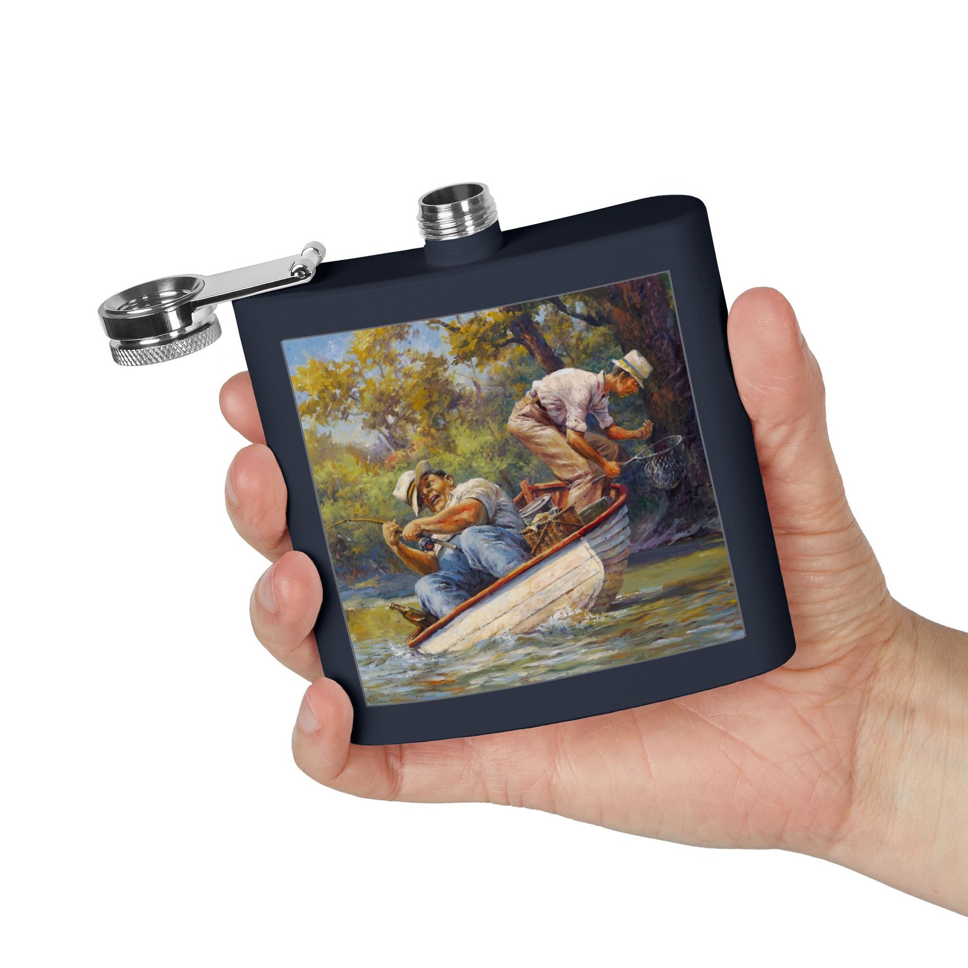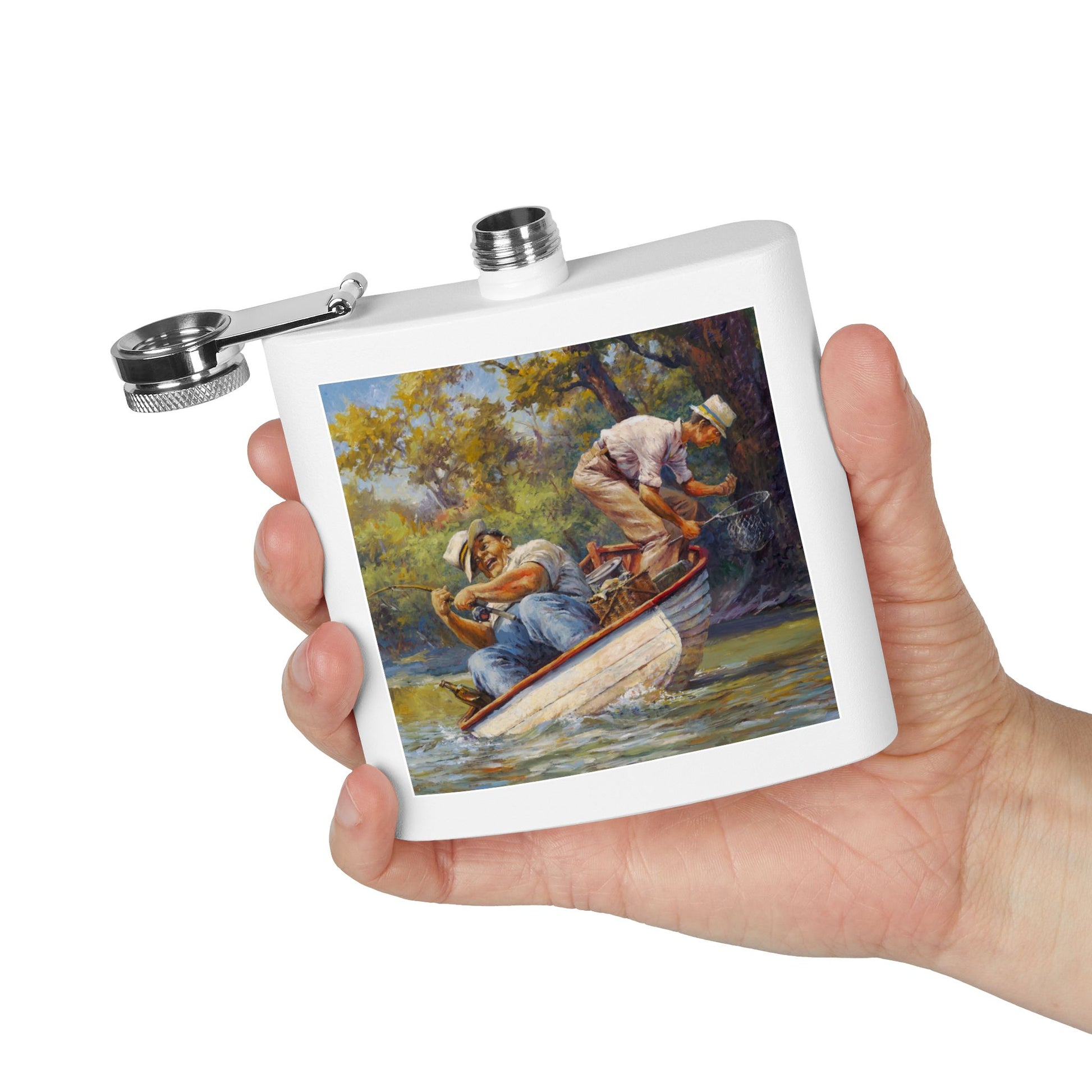 It's a Big One - Fishing Scene Stainless Steel Flask - Perfect for Outdoorsy Gifting