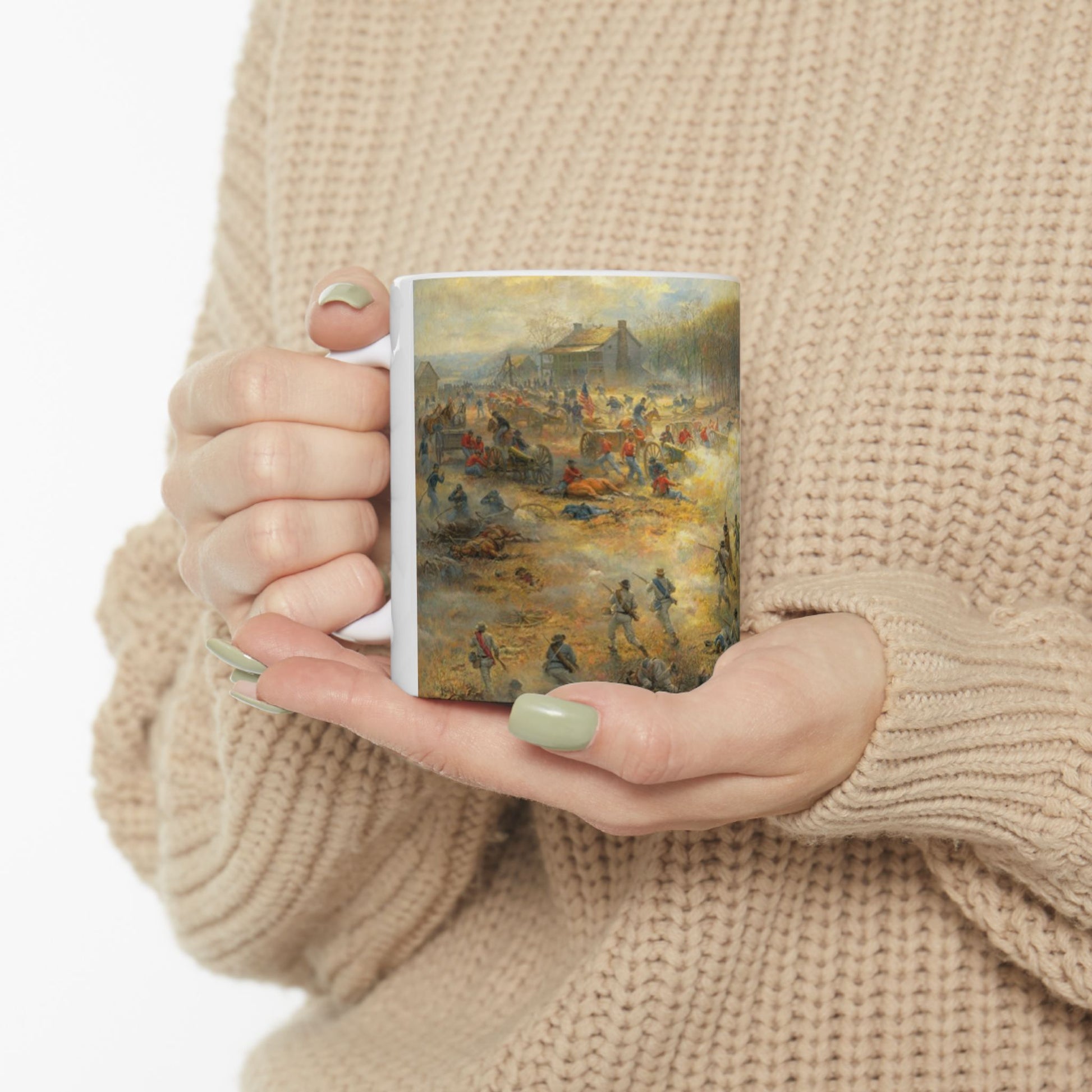 On the Battery - Ceramic Mug with Pea Ridge Civil War Design.